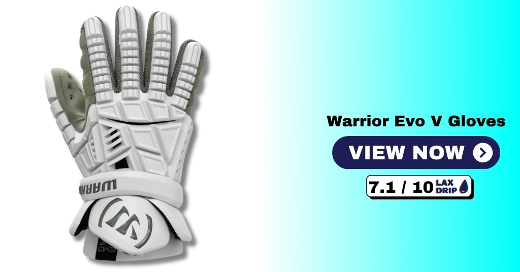 Warrior EVO V lacrosse gloves are the premium-quality gloves of 2024, featuring advanced technology. They have a bulky design, weighing 7 ounces, but the Wartech mesh liner offers excellent breathability and comfort.